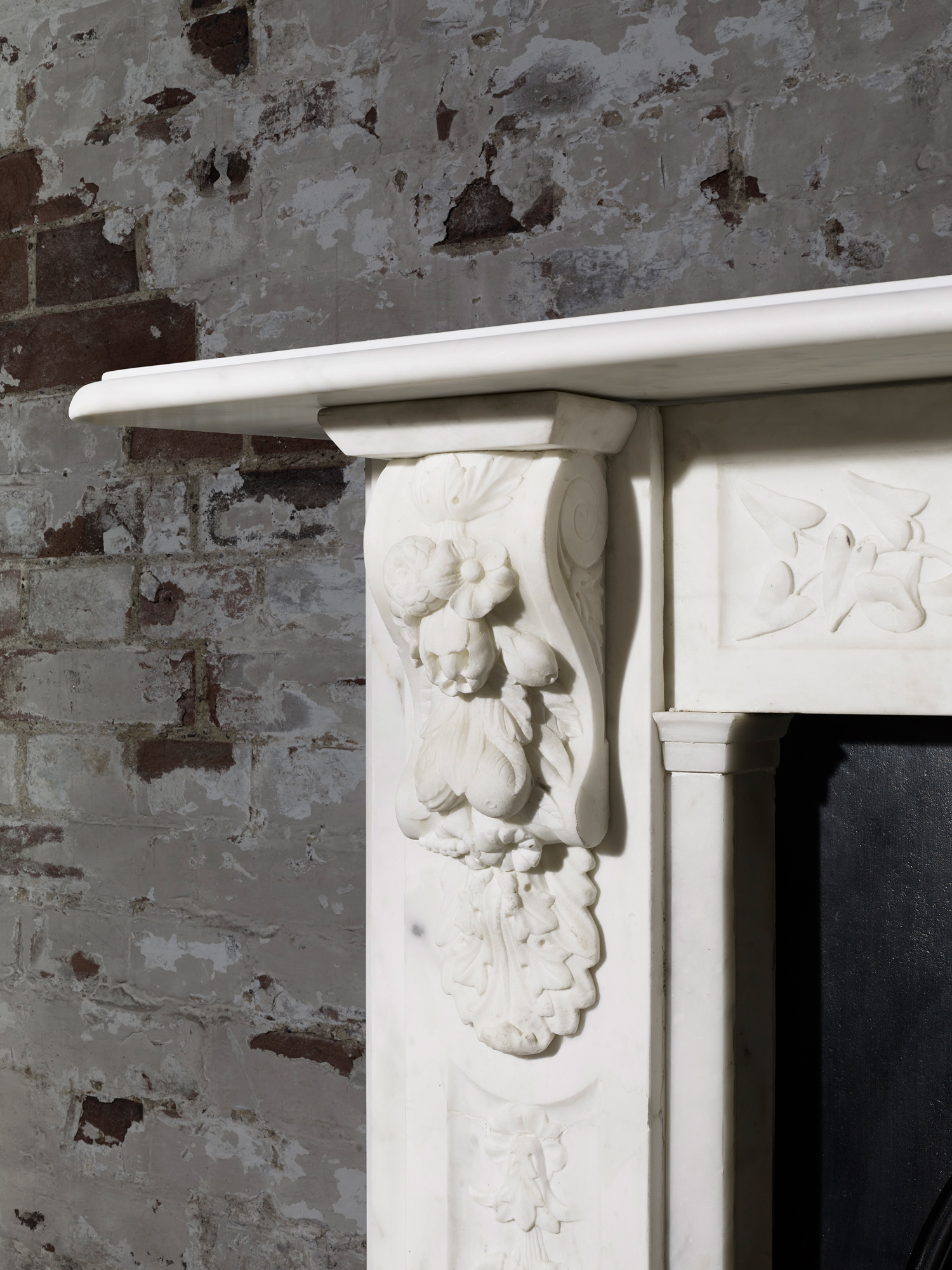 Original heavily carved Statuary white marble corbel